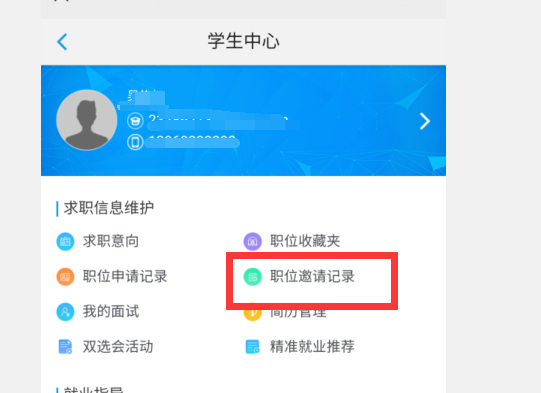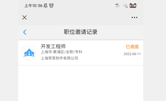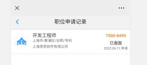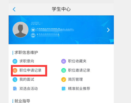 学生投递简历后,可以点击职位申请记录查看投递情况,如图: