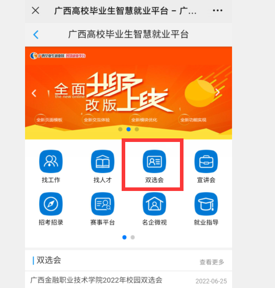 回到首界面,点击双选会,如图: