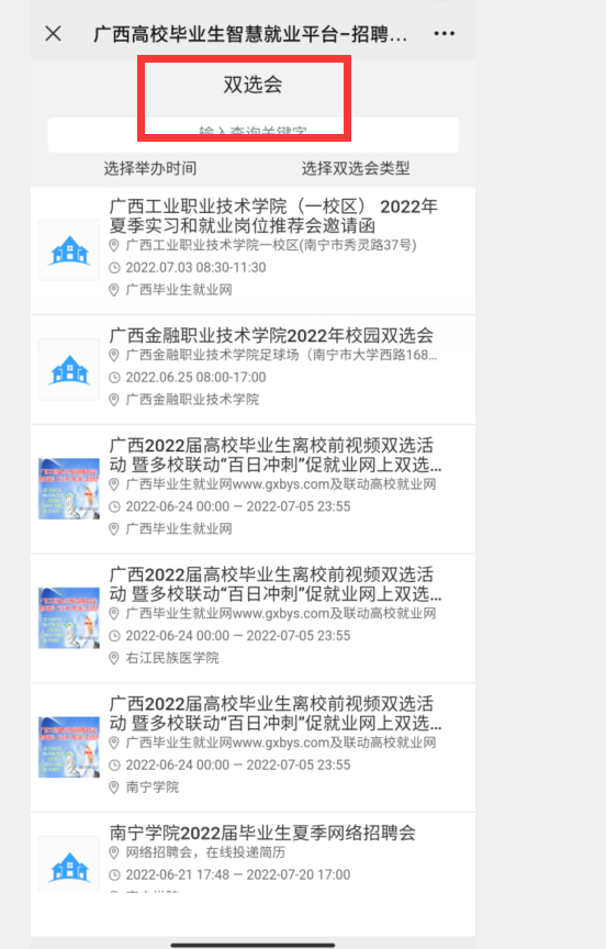 下方会出现不同的双选会,如图: