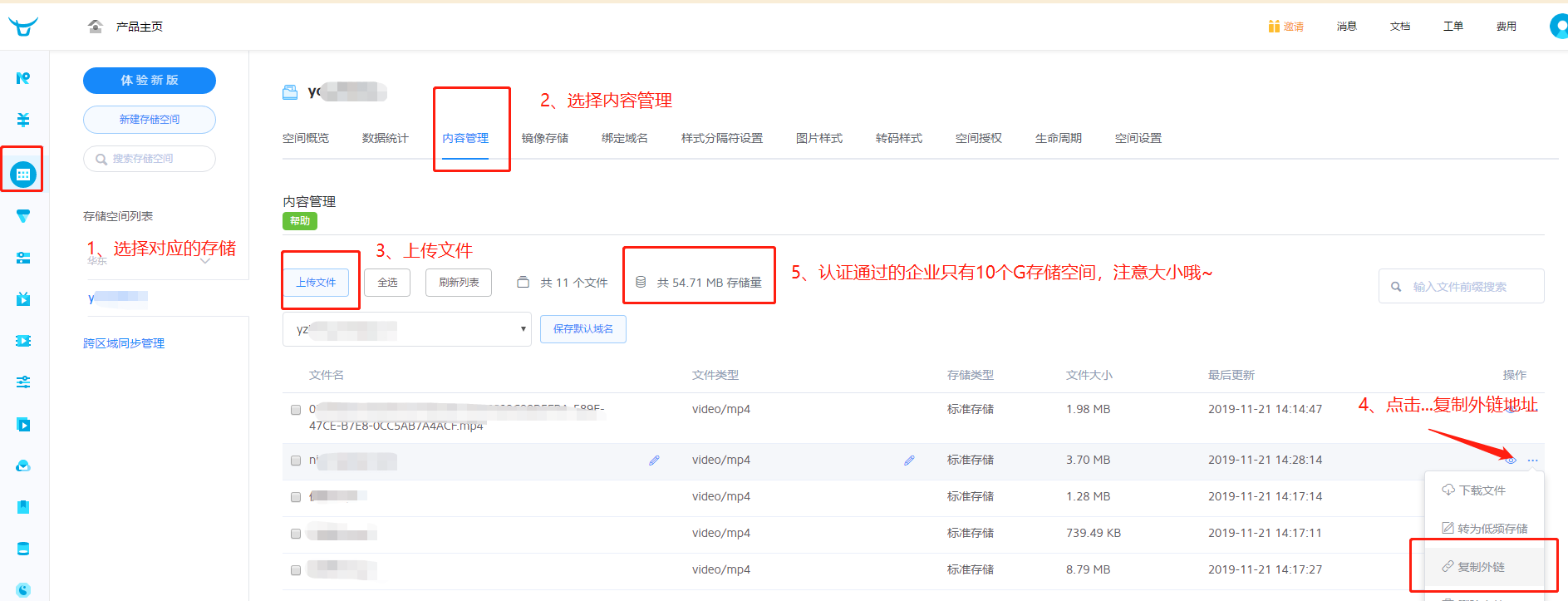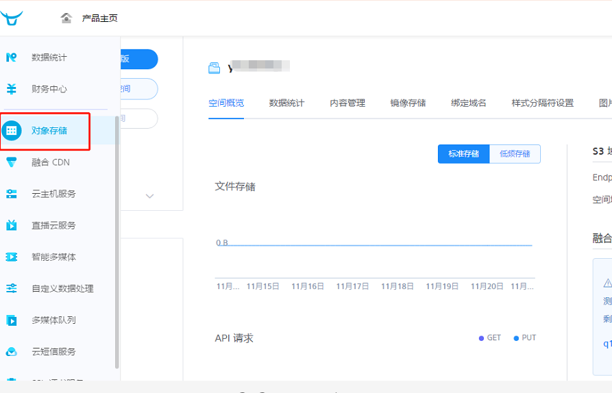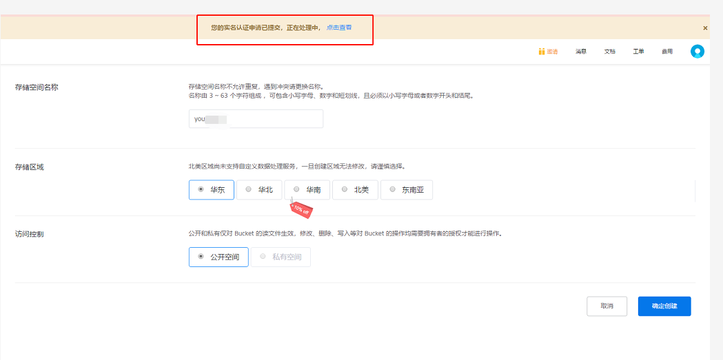 ## 五、完成认证之后,创建存储空间(只有完成认证才可以创建的,需要等待一个工作日内审核完成,审核完会有短信进行提醒)