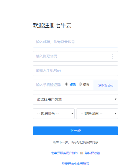 点击链接注册[https://portal.qiniu.com/signup?code=1h61k2ainmr0y](https://portal.qiniu.com/signup?code=1h61k2ainmr0y)七牛云账号