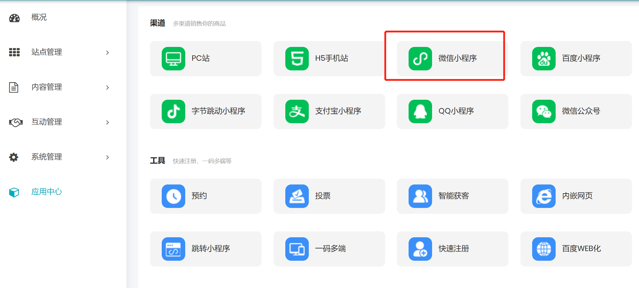 - 官网建站-微宝阁后台添加小程序