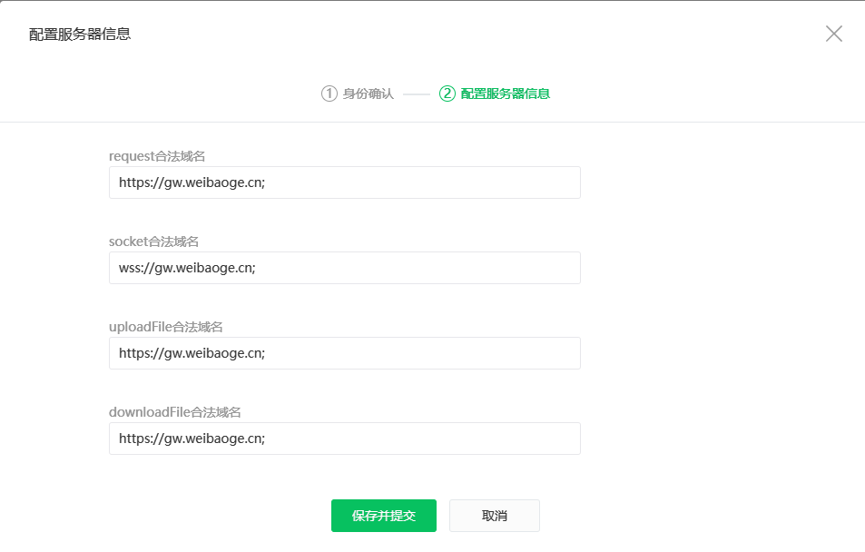 ##### socket合法域名第一栏填写:wss://gw.weibaoge.cn