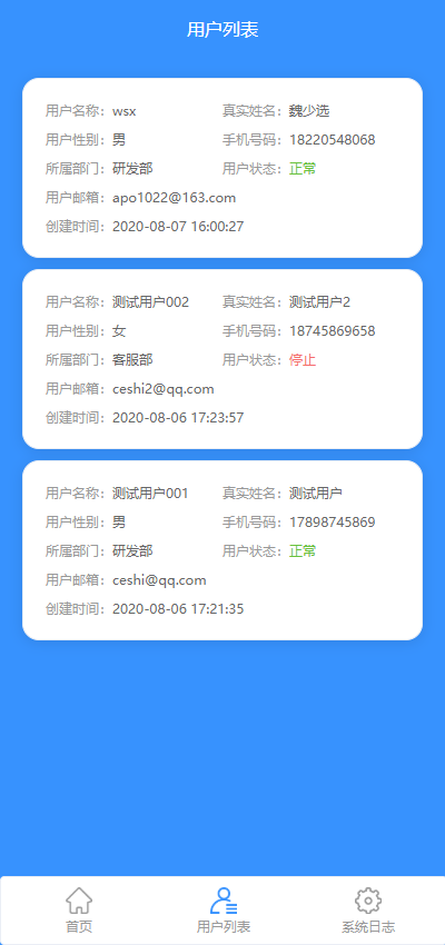 如图,点击首页下方的用户列表进入用户列表页面,可以看到当前账号下的所有子用户信息。