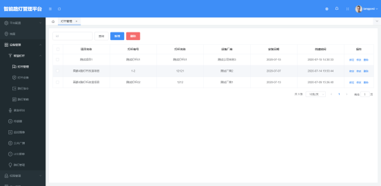 选择灯杆对应的项目,以及输入灯杆对应的信息,选择灯杆所在的区域,灯杆路段和灯杆坐标只需要点击地图上的位置会自动获取到,选择设备厂商和安装日期后点击确定,完成灯杆创建。