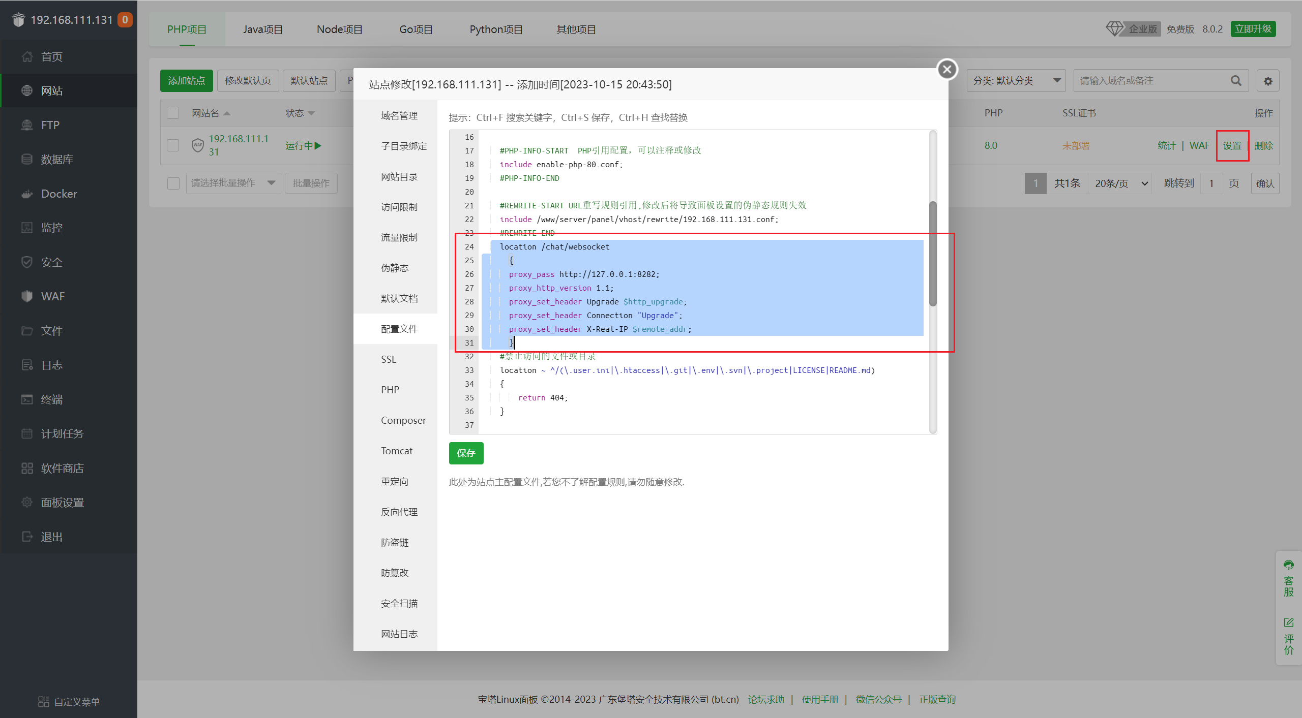 #### 1.进入网站 - 设置 - 配置文件 添加以下配置