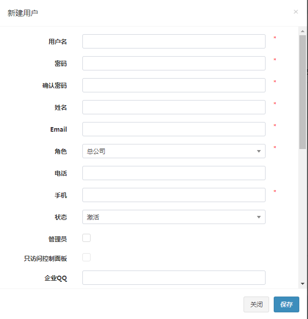 输入用户名,密码,Email,姓名和角色,等信息,确认后点击保存,同时也可以上传用户的照片。