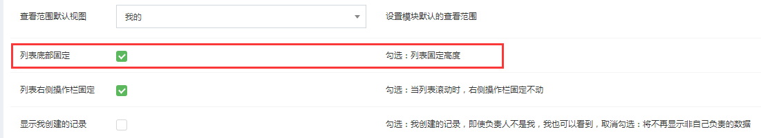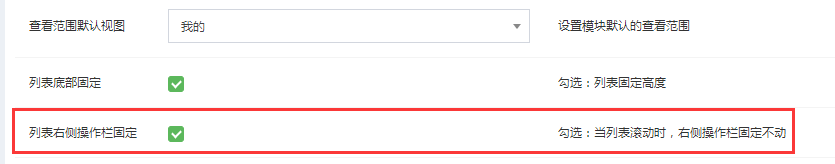 勾选:当列表滚动时,右侧操作栏固定不动