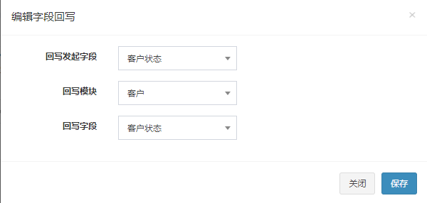 * 字段回写规则可以实现A 模块向B模块回写字段值的功能,是字段传递的逆向效果,同样字段类型必须一致。