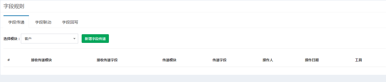 * 字段传递规则可以实现A 模块向B模块传递字段值的功能,但两个字段类型必须一致。