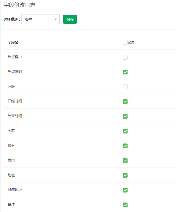 系统定制>字段修改日志,选择模块 勾选需要日志的字段名称,保存清除缓存即可