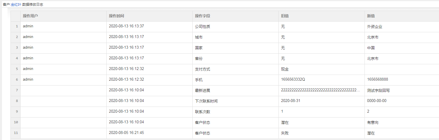 字段修改日志是记录系统中数据修改过的痕迹,通过日志可以知道数据操作人、操作时间,操作内容等信息,方便公司管理用户随意更改数据