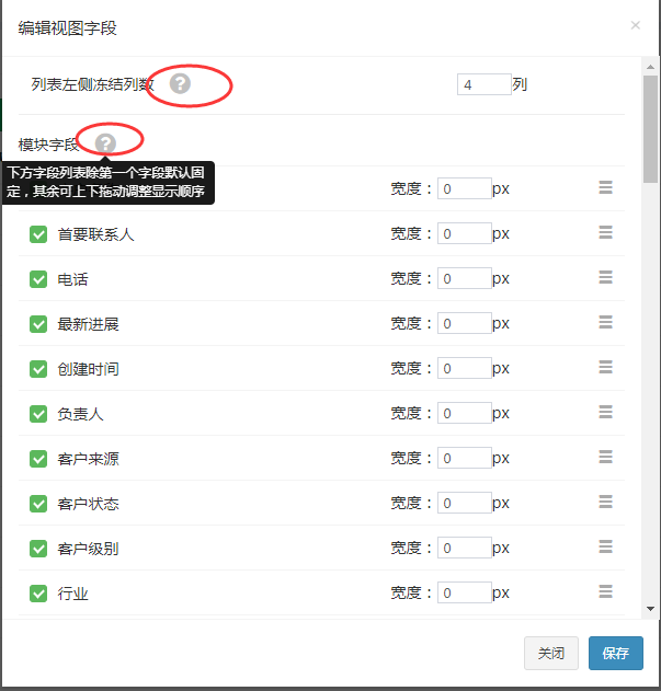 设置列表字段是调整列表字段的前后顺序,鼠标放在字段旁边可拖动排序