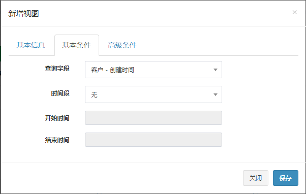 基本条件:当前视图根据什么时间段来进行查询筛选数据,时间范围也可自定义