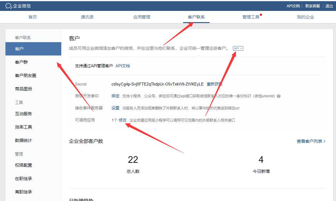 企业微信--客户联系--客户--API--可调用应用