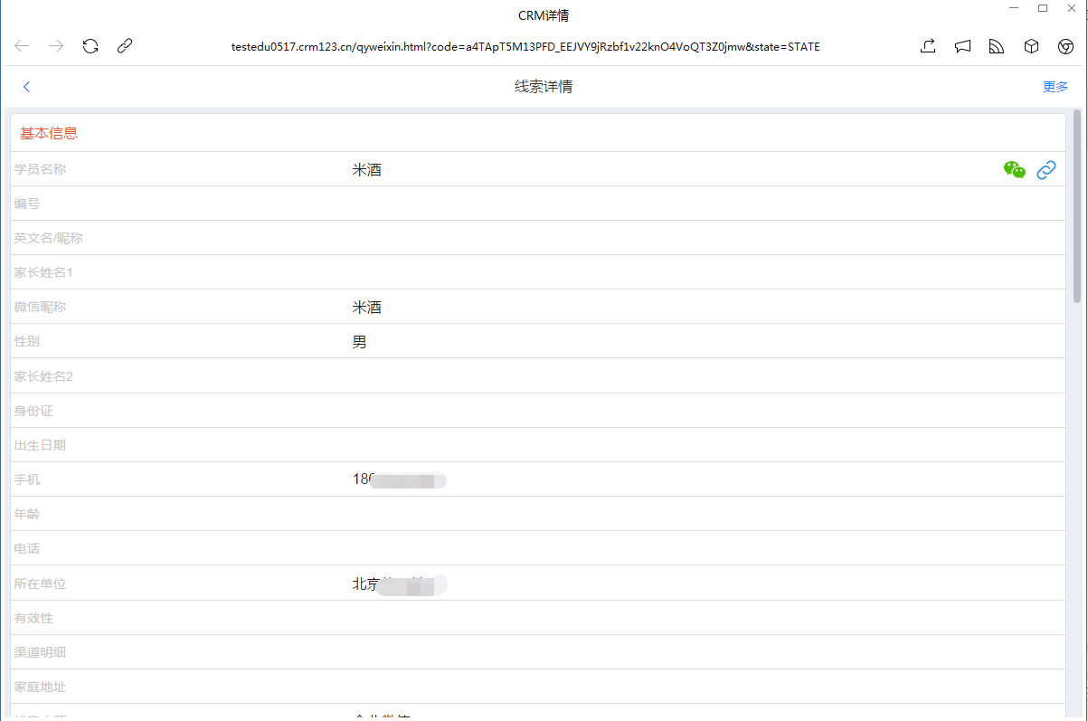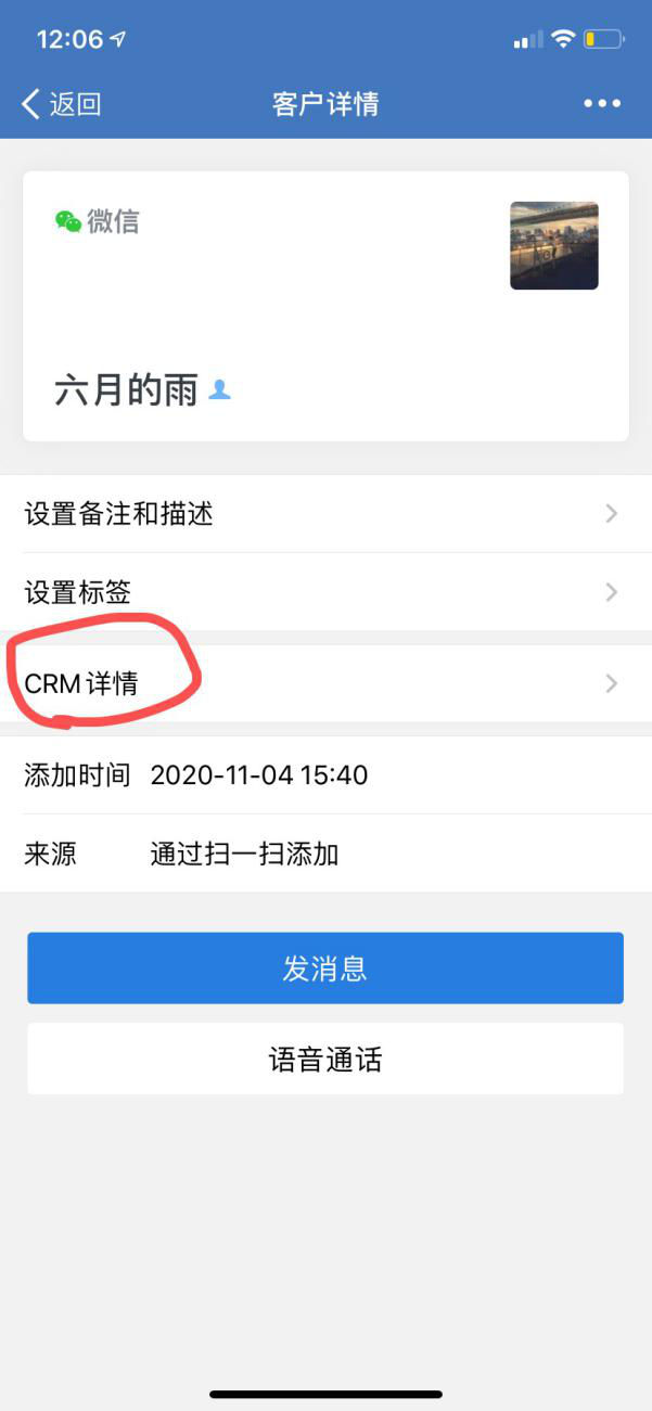 企业微信客户详情跳转CRM详情展示