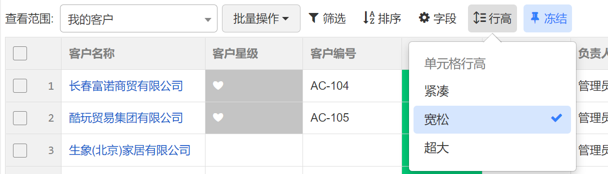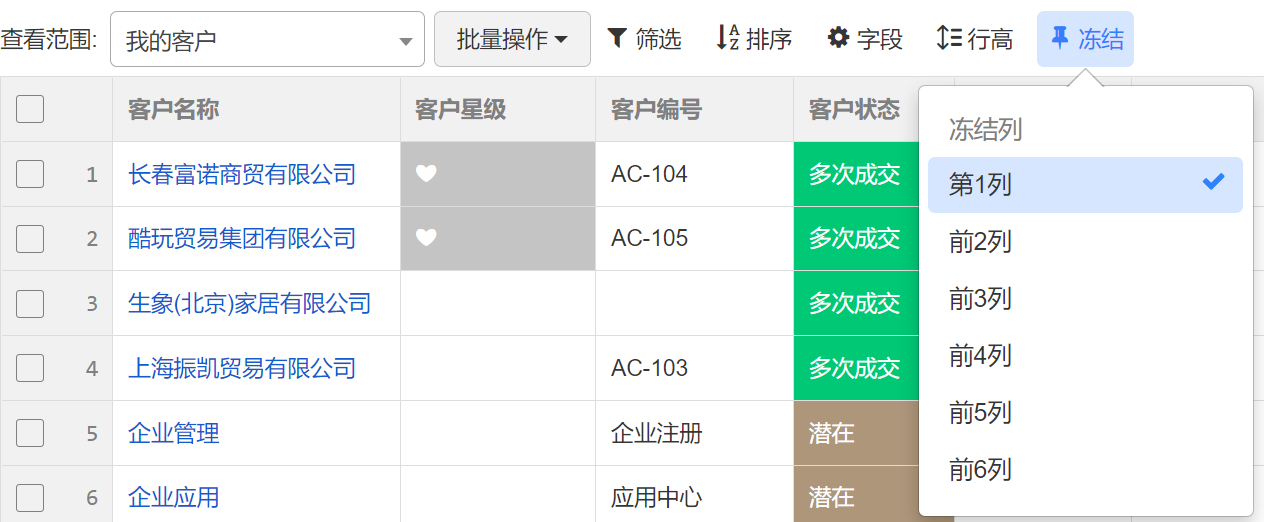 选择冻结的列数;选中后在左右拖动页面的时候;被冻结的列始终保持显示。