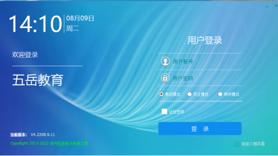 创建好项目、科目、考生、教师信息后,接着就可以进行模板制作了,打开五岳智能扫描识别平台,输入账号密码,点击登陆按钮,如图所示。