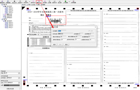 可对辅助涂点的识别参数进行修改,或者删除辅助涂点选中辅助涂点,框选某一选项,确定后,显示涂点区块参数(适用于选项印刷不规范的补救措施),显示如图所示。