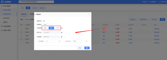 点击【多评设置】,修改评卷类型(单评,双评,三评),如图所示。