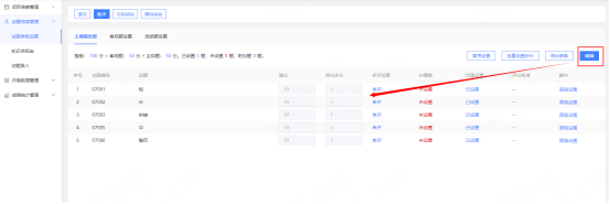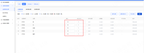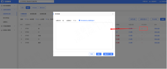 以上流程设置完成后,回到五岳考试管理平台,选择【试题参数设置】\-【主观题设置】,进行主观题的评分和答案设置,如图所示,