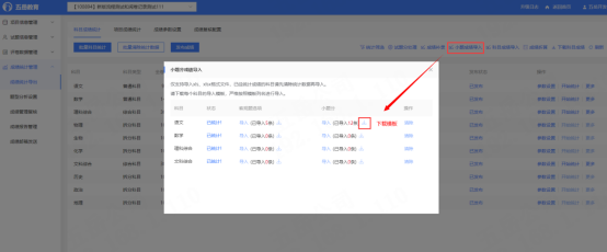 小题成绩导入与试题分处理互斥,已经试题分处理规则的科目禁止导入客观题选项和小题分。