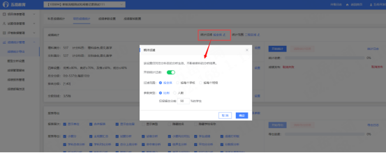 统计过滤: 选择过滤范围,设置保留成绩的比例或人数