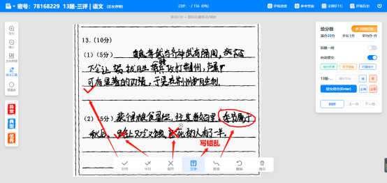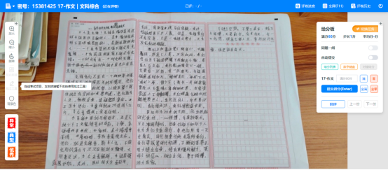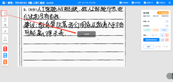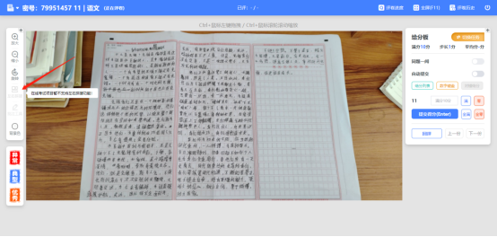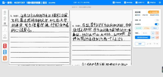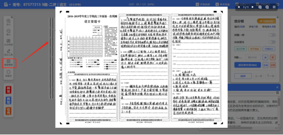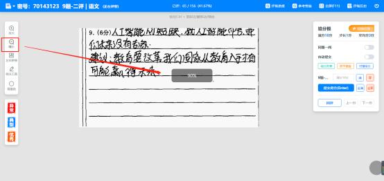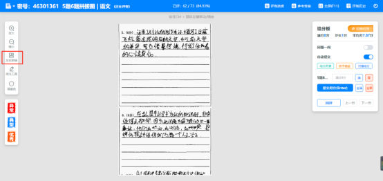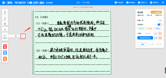 注意:在项目当前科目中开启了【评卷中查看整张答题卡】权限并且在试题参数中设置了屏蔽区,才能查看整张答题卡,关闭权限后不展示【查看整卷】按钮。
