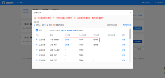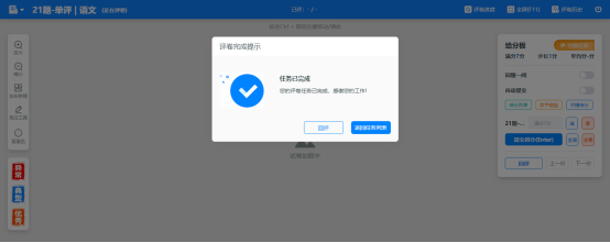 在评卷到最后一份试卷时,提交分数后,弹窗提示:任务已完成,