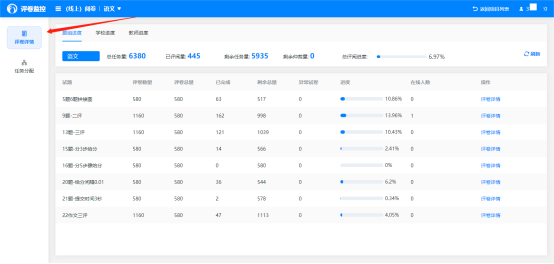 1、打开网上阅卷,在项目列表选择对应的项目,点击【评卷监控】模块,进入评卷监控页面,如下图所示;