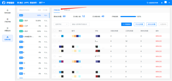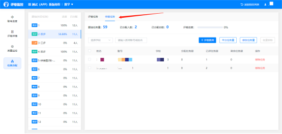 1、评卷任务:支持添加评卷教师,平分任务量,修改任务量,移除任务,如下图所示;