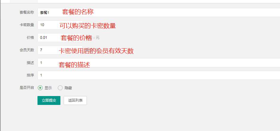 - 卡密套餐