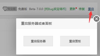 重启按钮有两个功能。重启面板:重启主面板程序,常用于使用遇到部分问题时,可尝试重启面板;