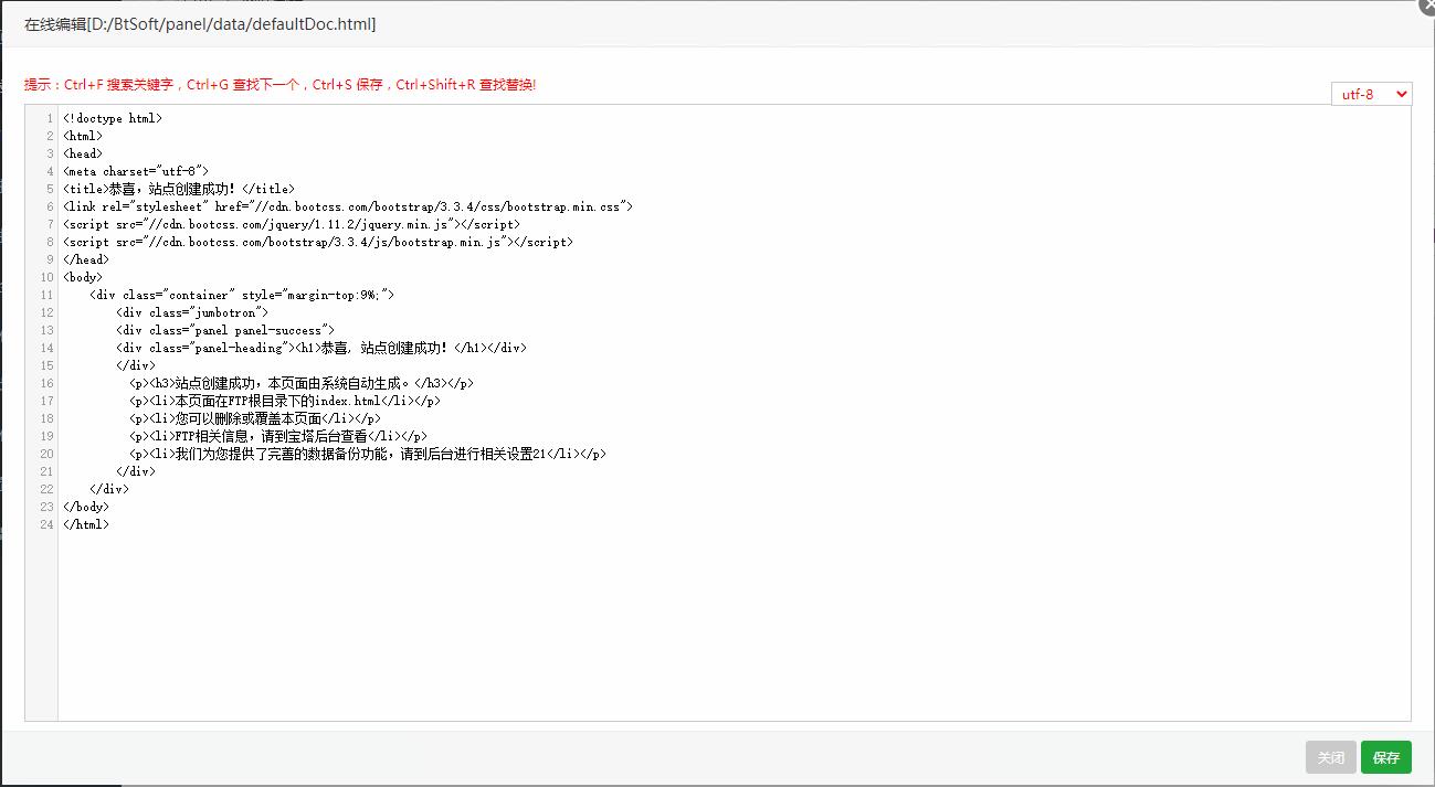 在这里可以修改自动生成的默认文档(index.html),404错误页(404.html),空白页,默认站点停止页。