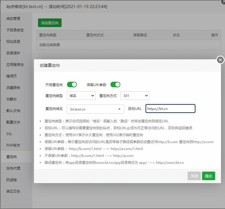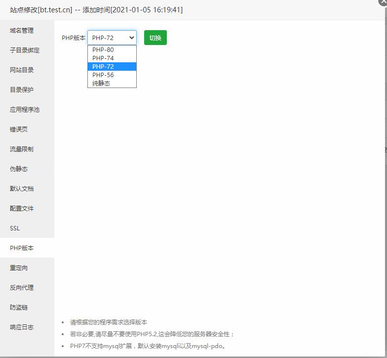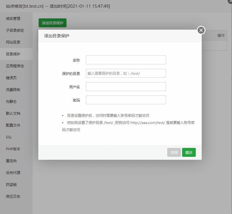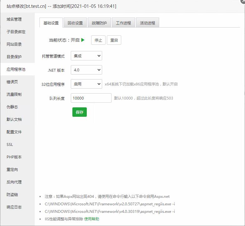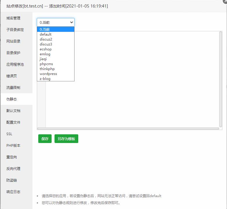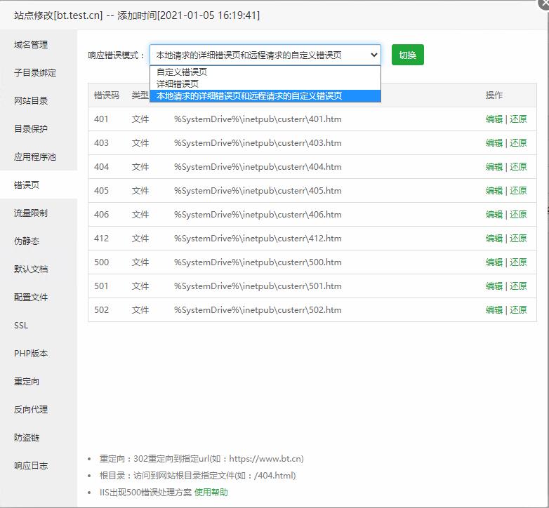 本页可以重新设置网站指向的目录,也可以设置运行目录。