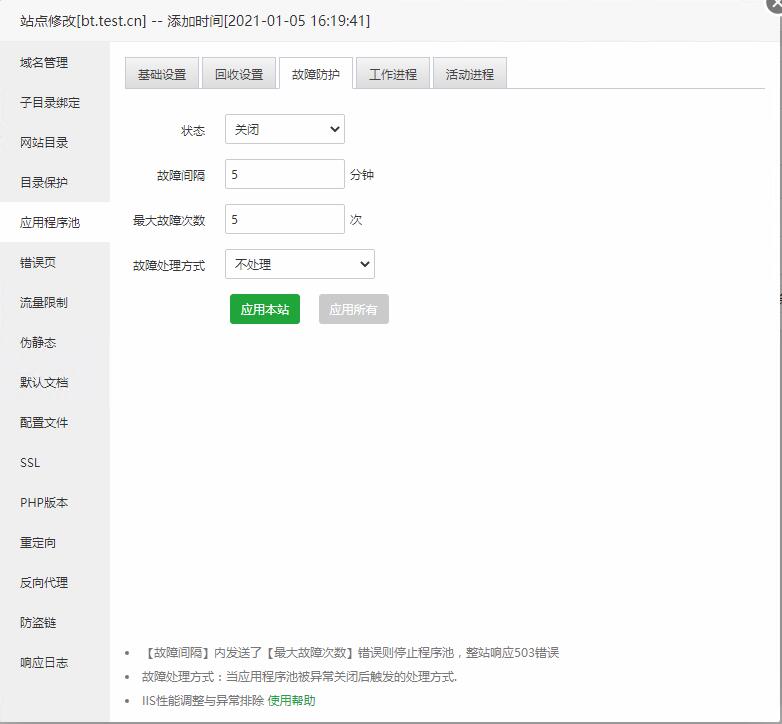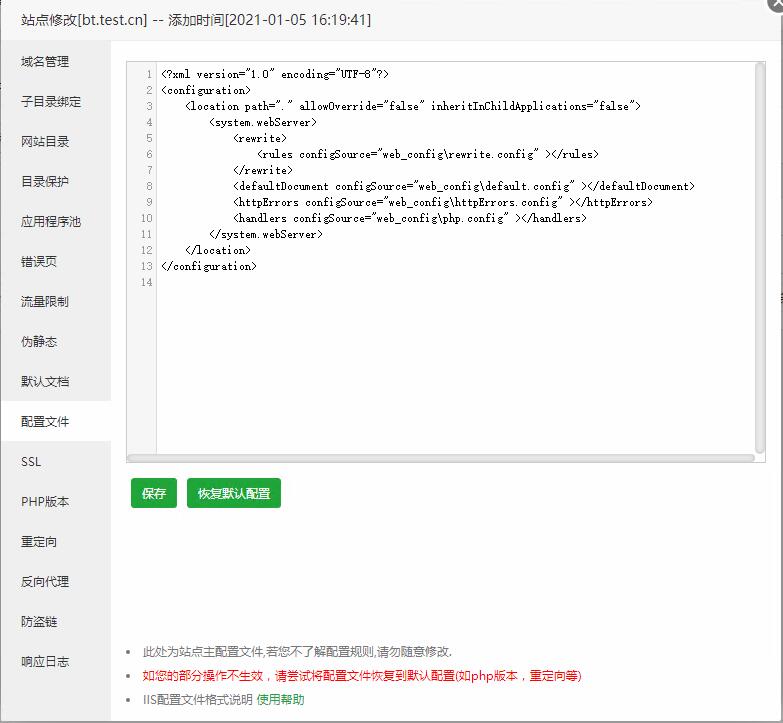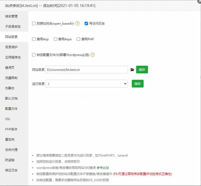 同时可以设置防跨站攻击、写入访问日志、禁用asp、aspx、php,锁定配置文件。