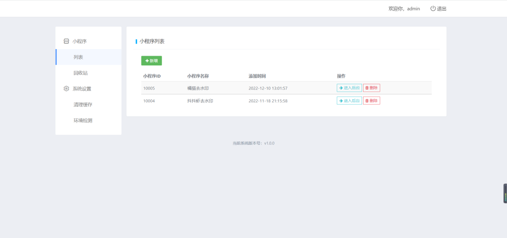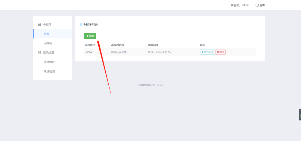 首先进入超级管理端,进行登录。登录后进入点击左边菜单栏的列表。选择新增小程序
