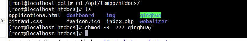 网页出现乱码解决方式 1、进入指定文件下“ cd /opt/lampp/htdocs/ ”,输入“ chmod -R 777 qinghua/ ”  2、刷新界面即可