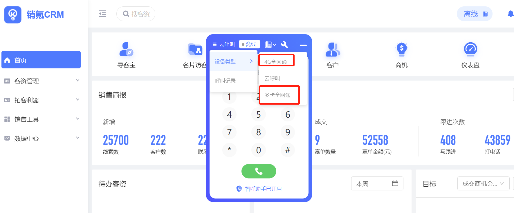 要先登陆销氪系统,并且设备类型单卡选择**4G全网通**;多卡选择**多卡全网通**