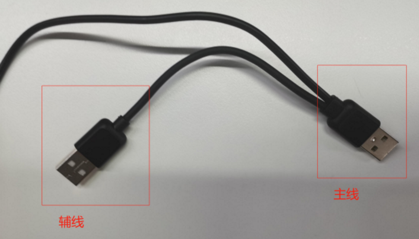 若电脑USB口数量有限,可以只插中间主线上的USB,另一根线作为辅助供电可以不插
