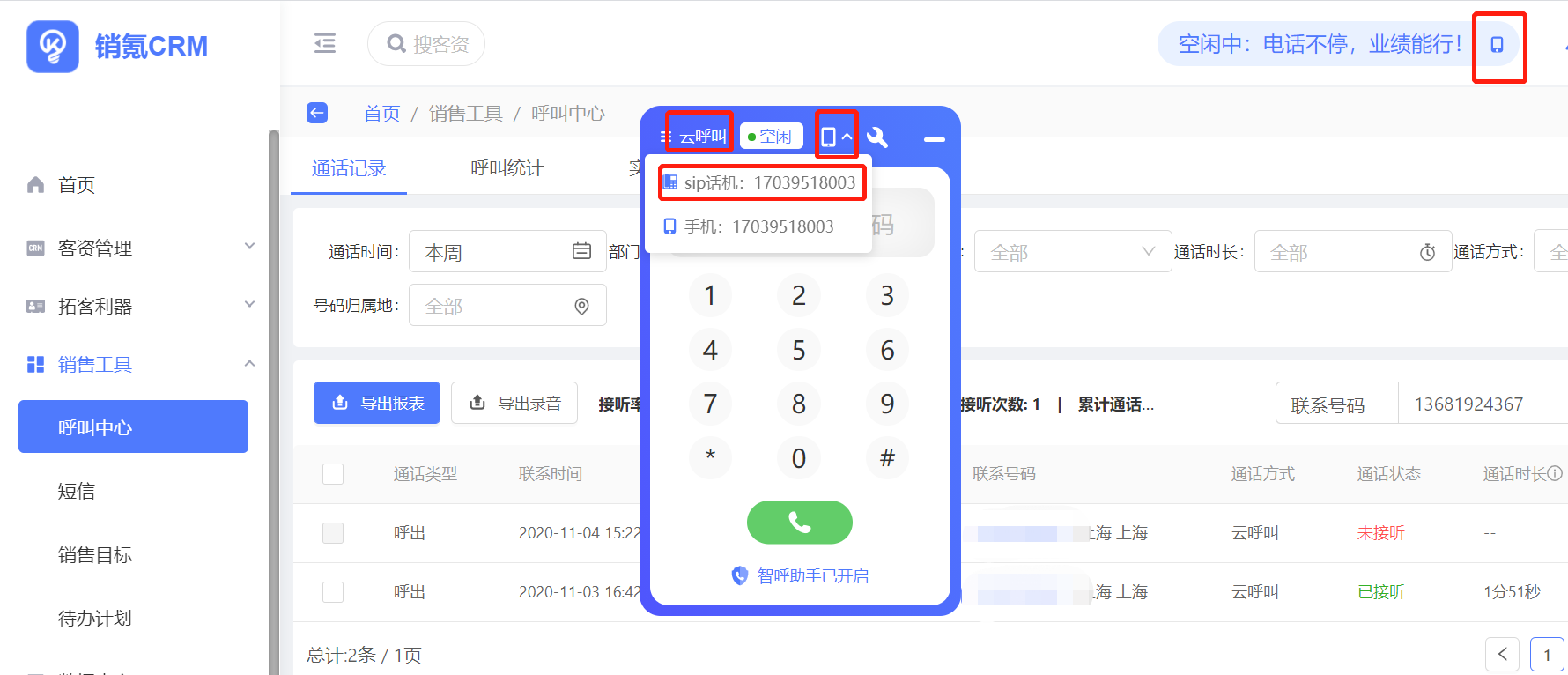 - 手机上,使用云呼叫外呼没有通话记录