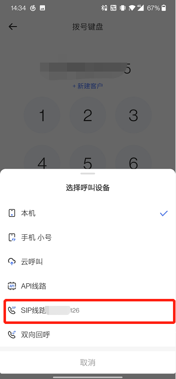3、外呼选择SIP线路
