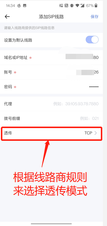 2、绑定sip账号,填写正确的