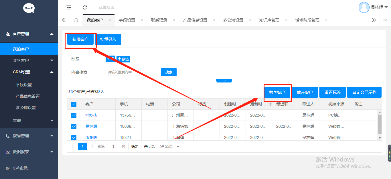 注:客户端销售是无法分配号码的,只能共享号码;只有企业管理员或者管理员授权的帐号才可以分配