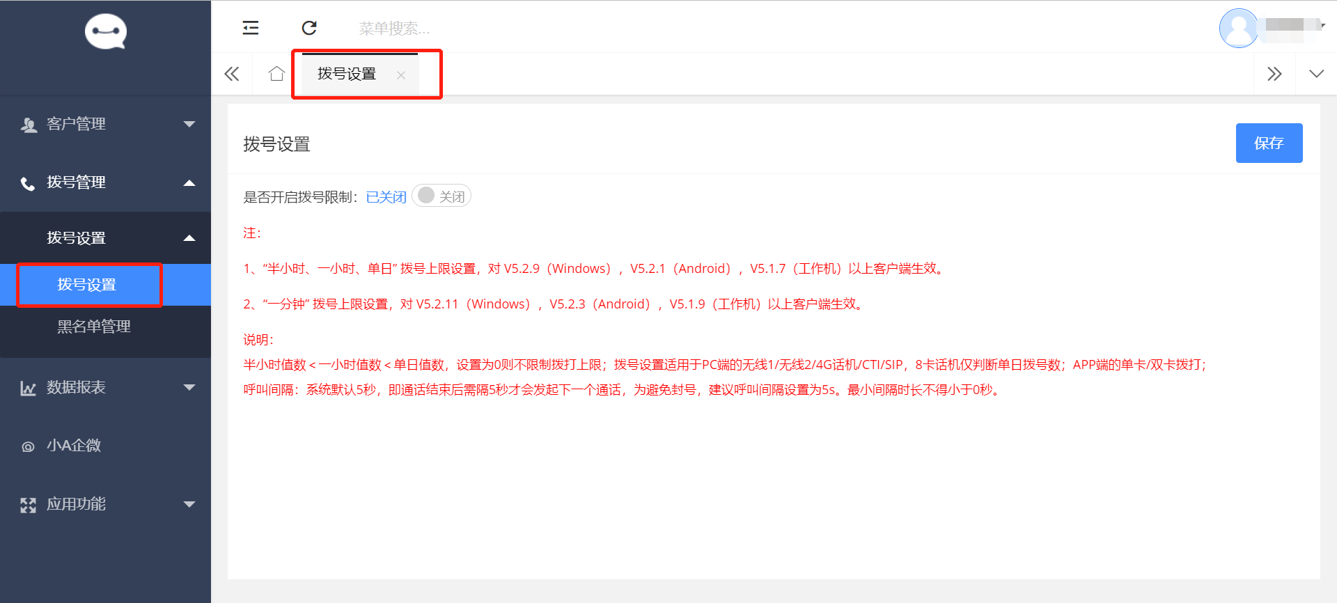 八、如果客户想减少电销卡被封的概率,需要进行拨号设置;
