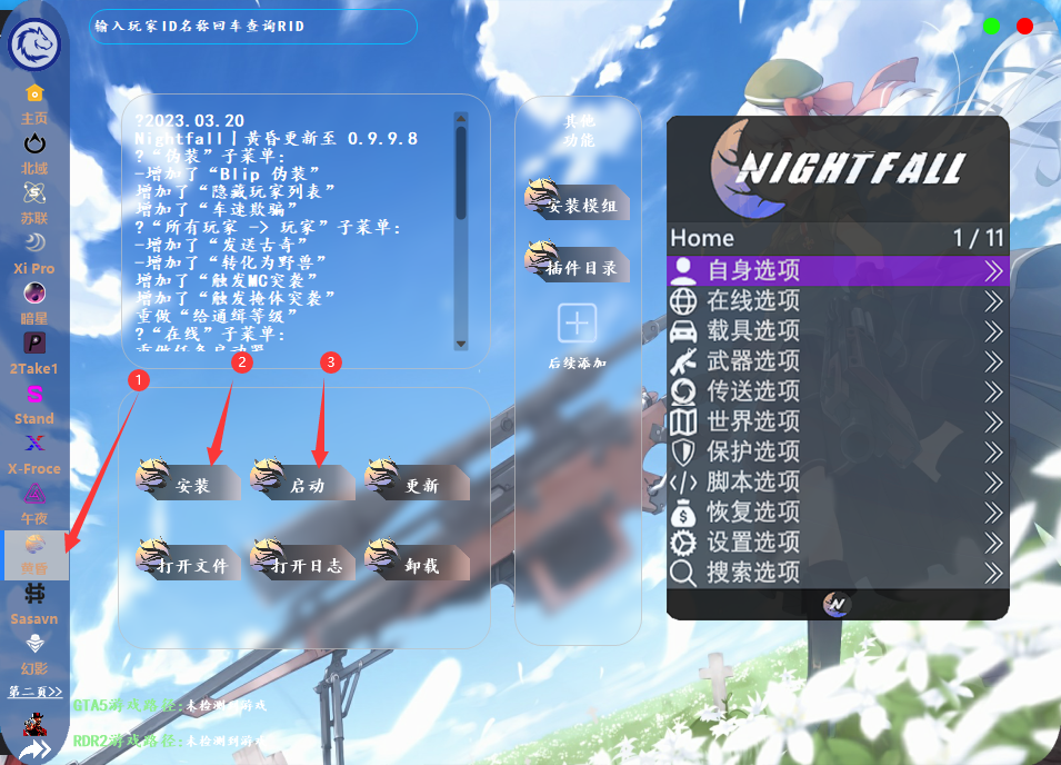 **1.先点安装、然后游戏进入到故事模式后点启动**