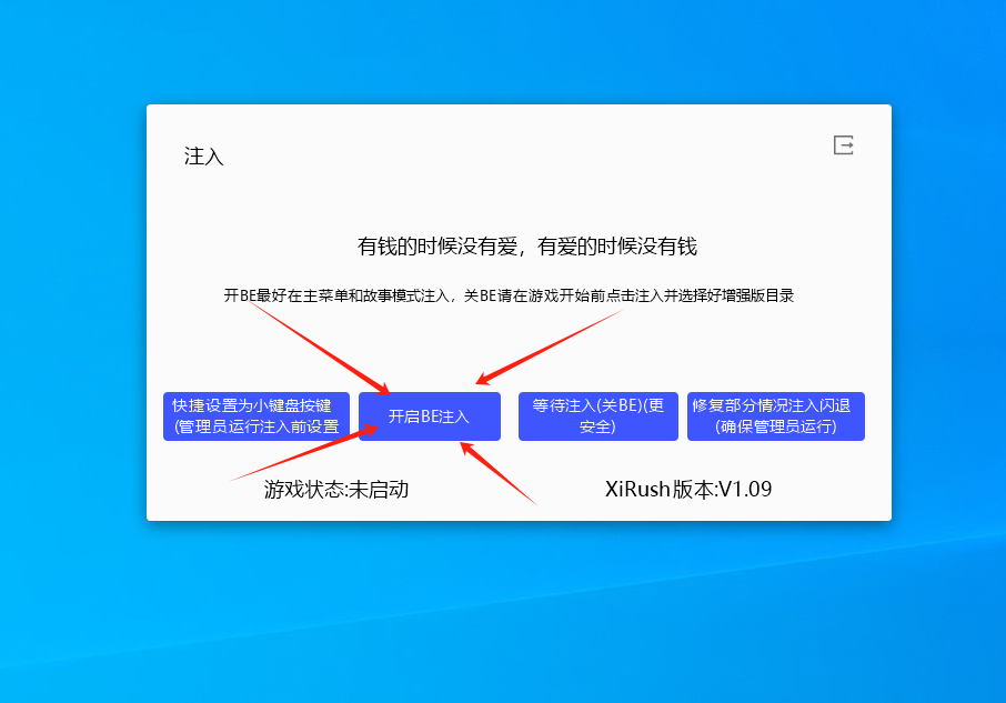 **3.启动游戏在选择线上或故事模式的界面点开启BE注入即可**