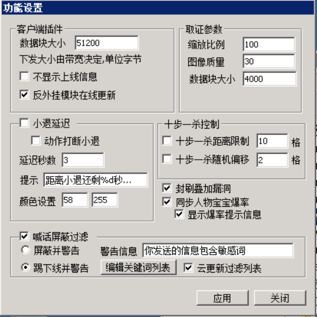 禁止NPC命令:这是禁止外挂直接调用NPC命令来点击NPC和回收的, 这道功能的出现导致了大多的脱机挂变成了模拟按键的方式