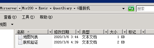 **4.Mir200\\Envir\\QuestDiary目录下新建一个文件夹取名为G盾脱机,将下载的压缩包中的2个txt文本放入此文件夹中,如下图**
