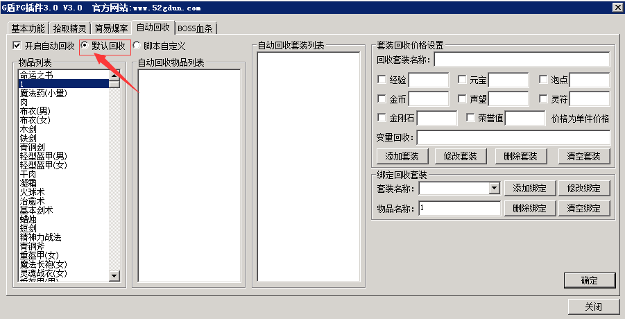 注3:需要先开启自动回收。不然列表不显示套装